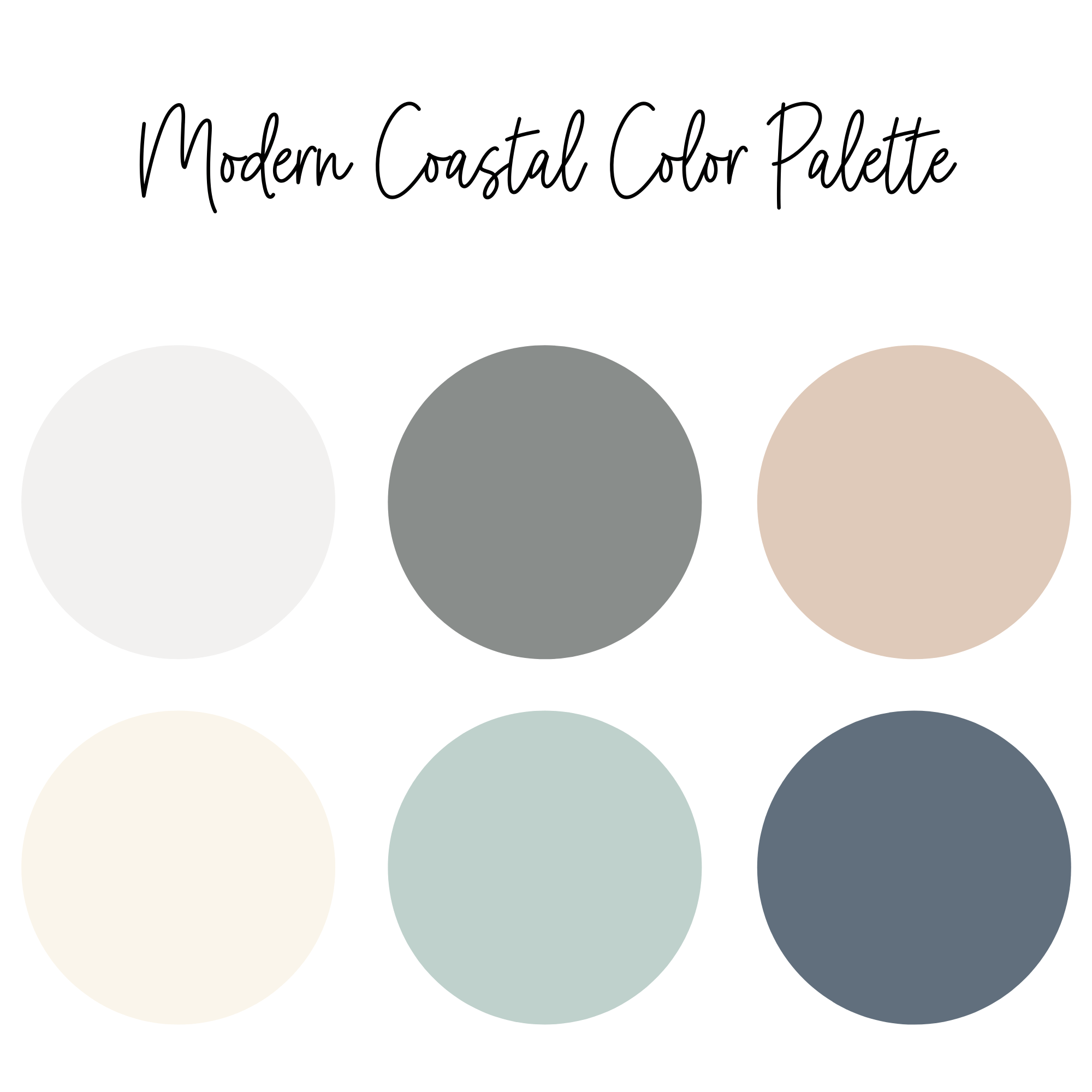 Light and airy colors are the main anchor in modern coastal design, with hints of blue, green, tan and other hues you’d find seaside and in coastal towns. Here is the color palette I’m using for our bedroom: